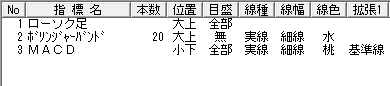 「分足」チャートを出して画面上で右クリックし、チャート条件(標準条件)選択の「3.ボリンジャーバンド/MACD」を選択してください。